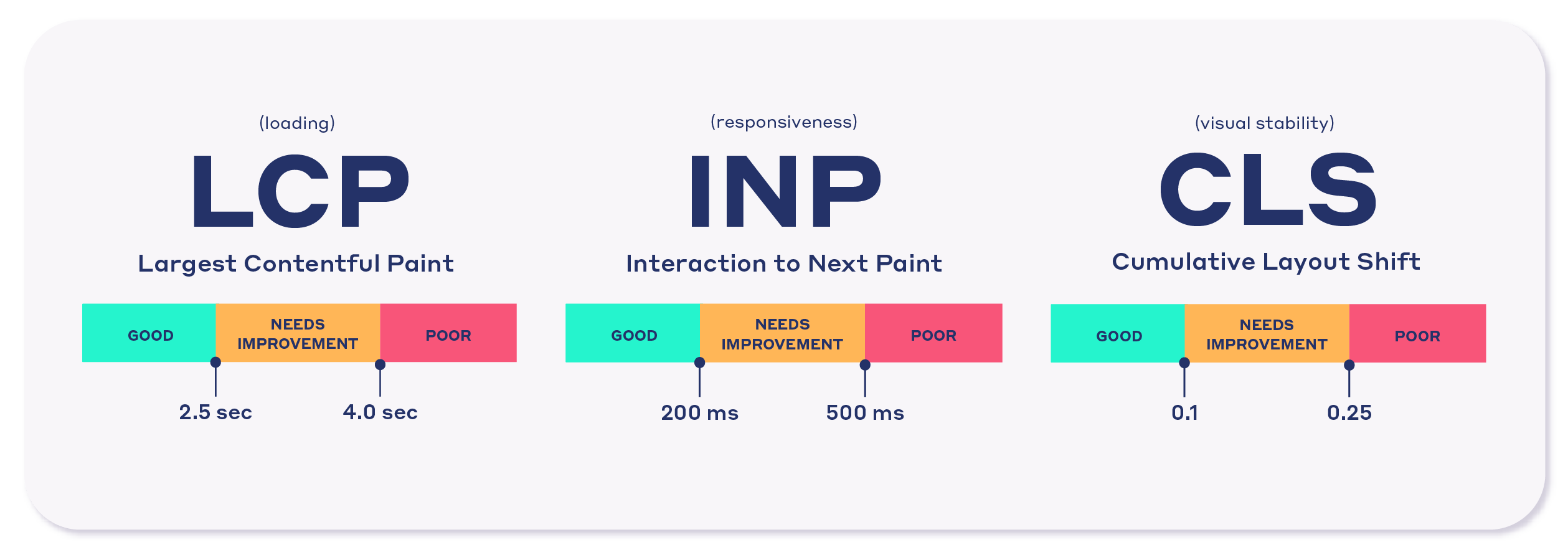 Los Core Web Vitals son un conjunto de métricas centradas en la experiencia del usuario, que Google utiliza para evaluar la velocidad, la interactividad y la estabilidad visual de una página web. Estas métricas se componen de tres elementos clave:
