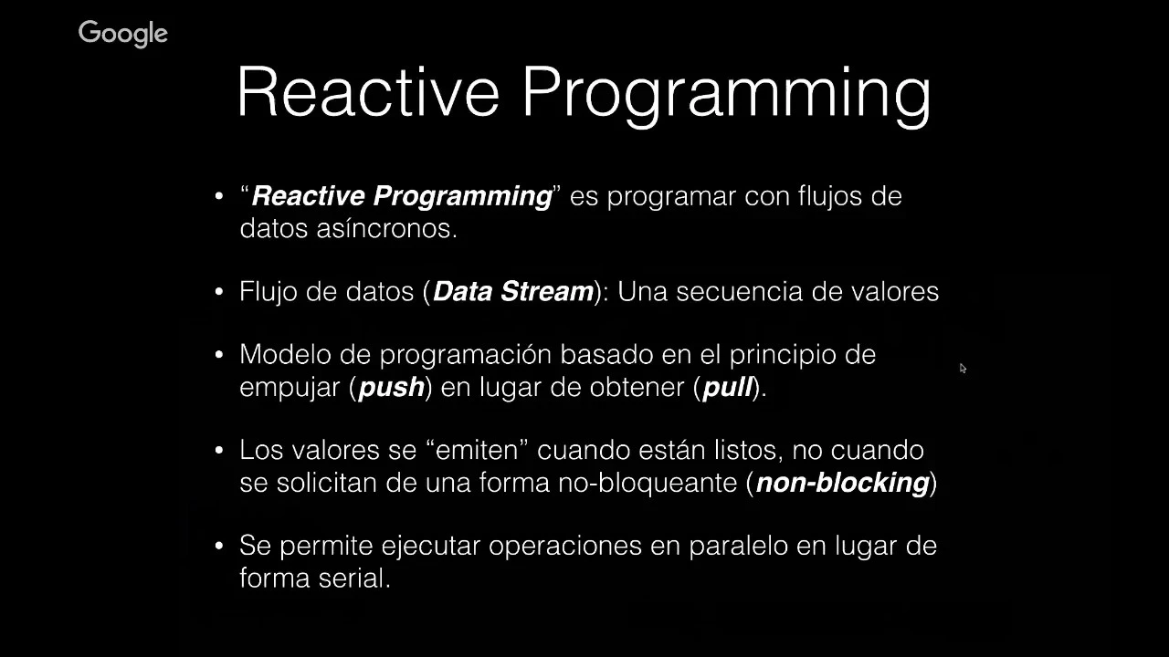 • Simplicidad en la gestión de concurrencia: Con la programación reactiva, el manejo de la concurrencia se simplifica, ya que permite trabajar con flujos de datos de forma más intuitiva mediante el uso de observables y operadores reactivos.